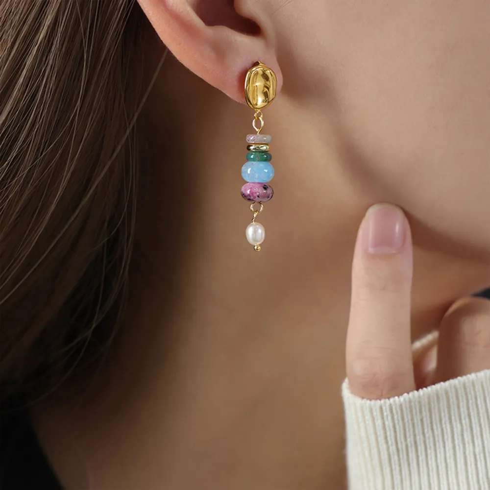 Simple, elegant, and timeless. These beautiful freshwater pearl dangle earrings add a touch of natural elegance to any outfit. Designed with genuine freshwater pearls and natural stone accents, they offer a graceful look perfect for everyday wear or special occasions.